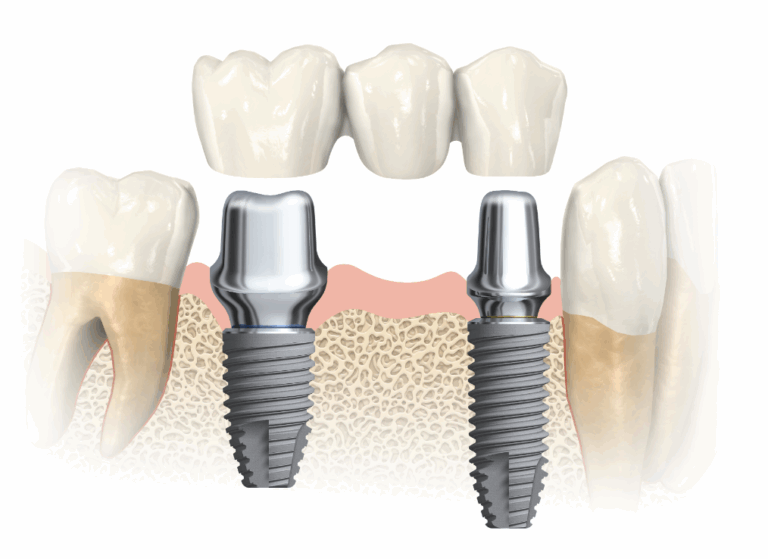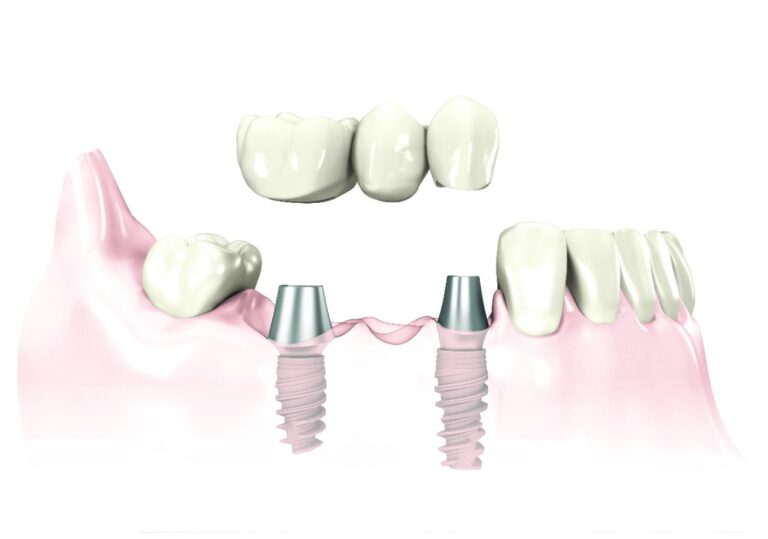 Dans le cas ou plusieurs dents contiguës sont absentes, et selon les conditions locales, le praticien pourra vous proposer la réalisation d’un « bridge » ou « pont » sur les implants.